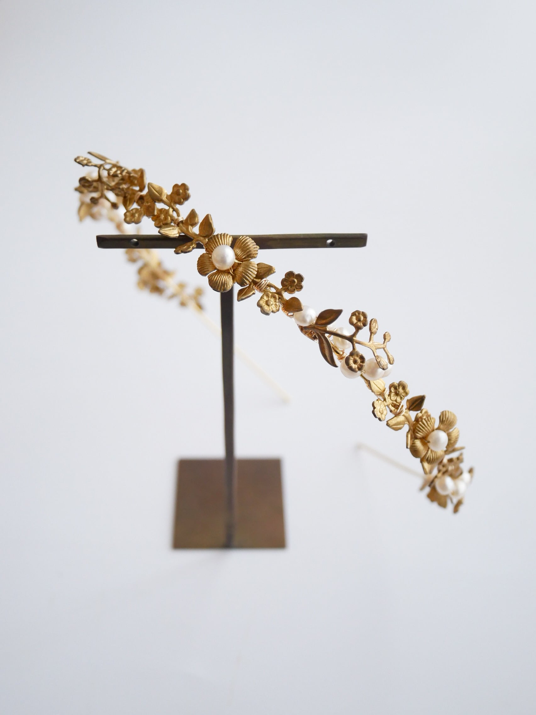 海外製の真鍮ゴールドと淡水パールが華やかな輝きを添えています。